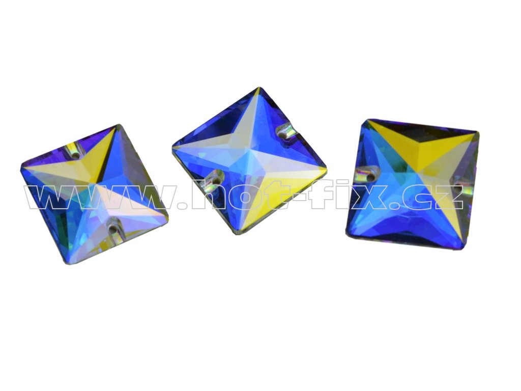 čtverec 12x12mm našívací kámen na textil skleněný broušený EXTRA Premium barva CBEP/1201 AB Crystal /stříbrná s duhovým efektem, balení 1ks