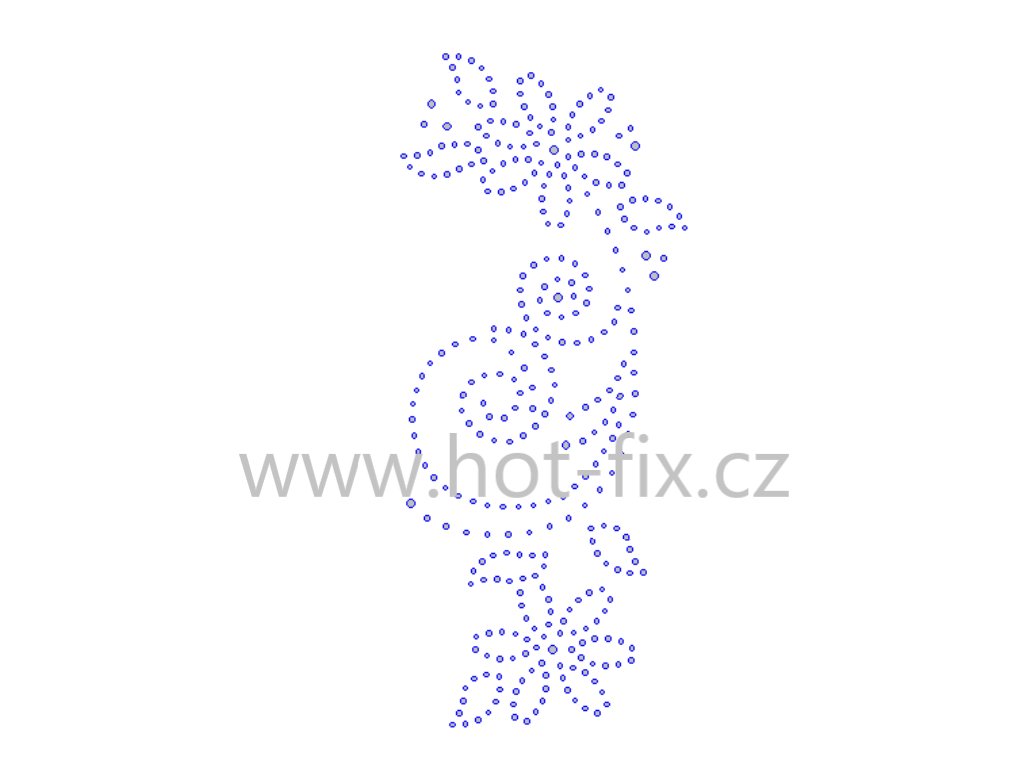 Aplikace je vyrobena z hot-fix skleněných broušených nebo polobroušených kamenů, velikost SS6 a SS10
