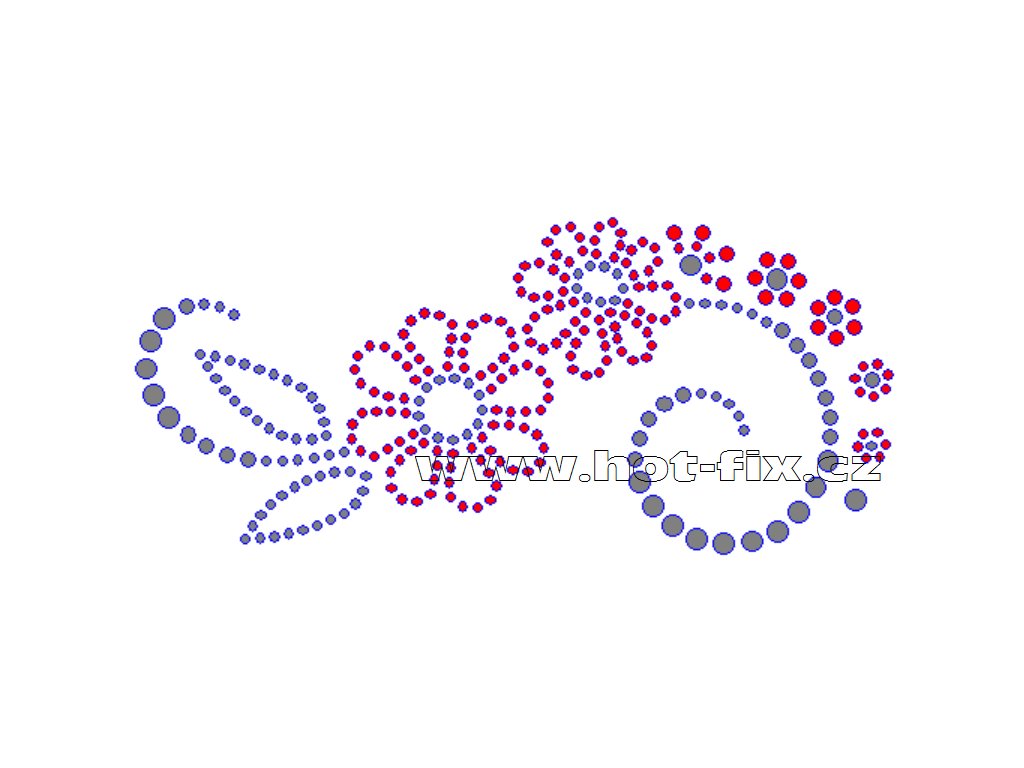 K039-L - květinový motiv nažehlovací aplikace na textil z hot-fix kamínků, rozměry cca 13,8x6,2cm