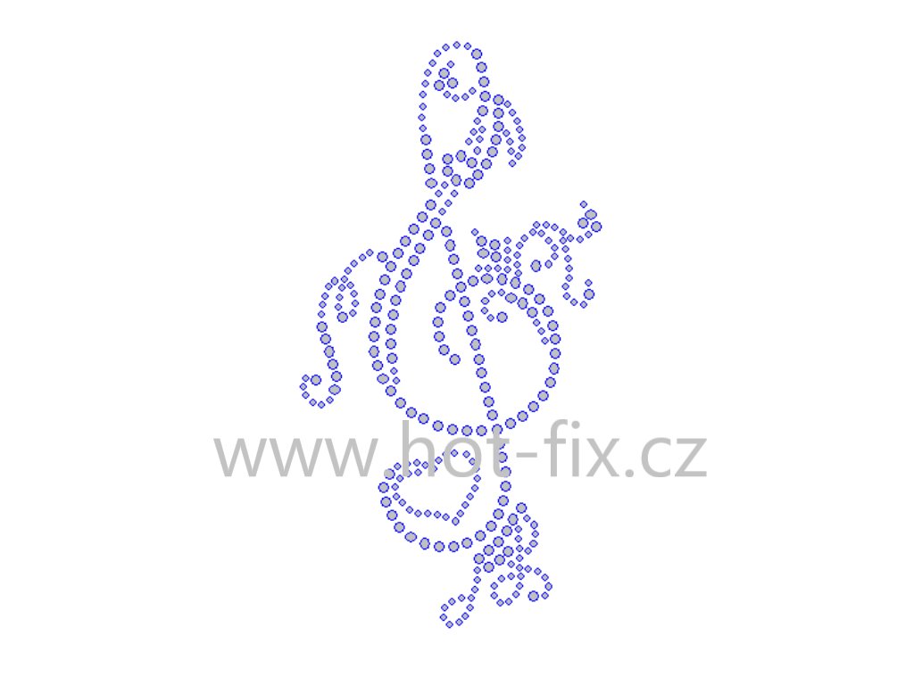 SN007 - hudební motiv nažehlovací hot-fix kamínková aplikace na textil, rozměry cca 8,3x16,1cm