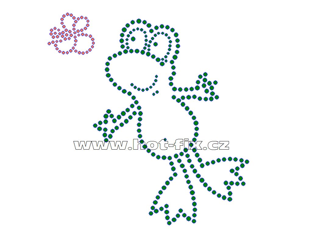 ZB002-A - žába nažehlovací hot-fix kamínkový potisk na textil, rozměry cca 13,0x13,7cm